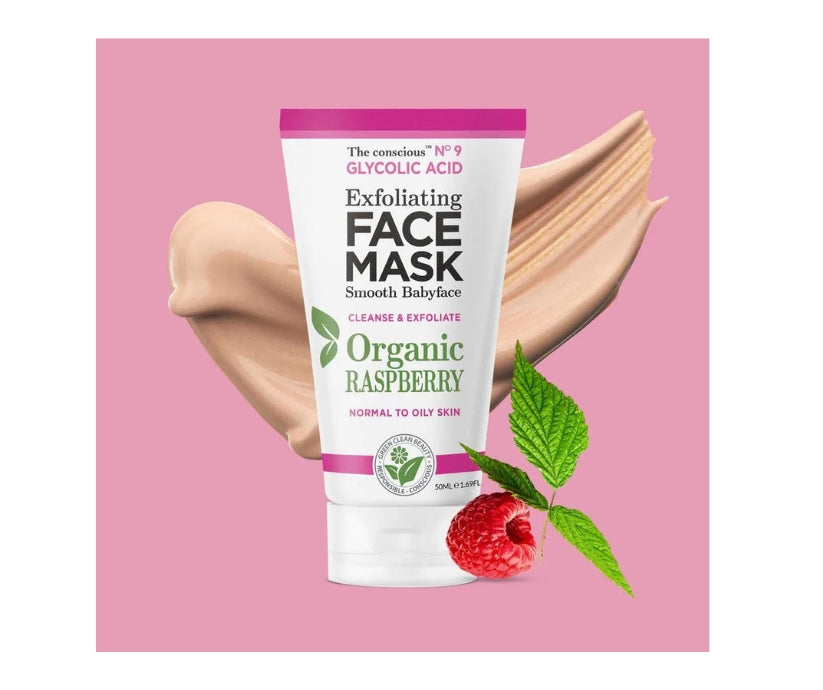 Die hauterneuernde Exfoliating Face Mask-Behandlung mit einer kombinierten Glykolsäure-AHA/BHA-Formel und Bio-Himbeerblättern peelt die Haut sanft, entfernt angesammelte abgestorbene Hautzellen und wirkt gezielt auf große Poren, um das Auftreten von Zeichen der Hautalterung zu reduzieren und sie glatter und strahlender zu machen Haut.