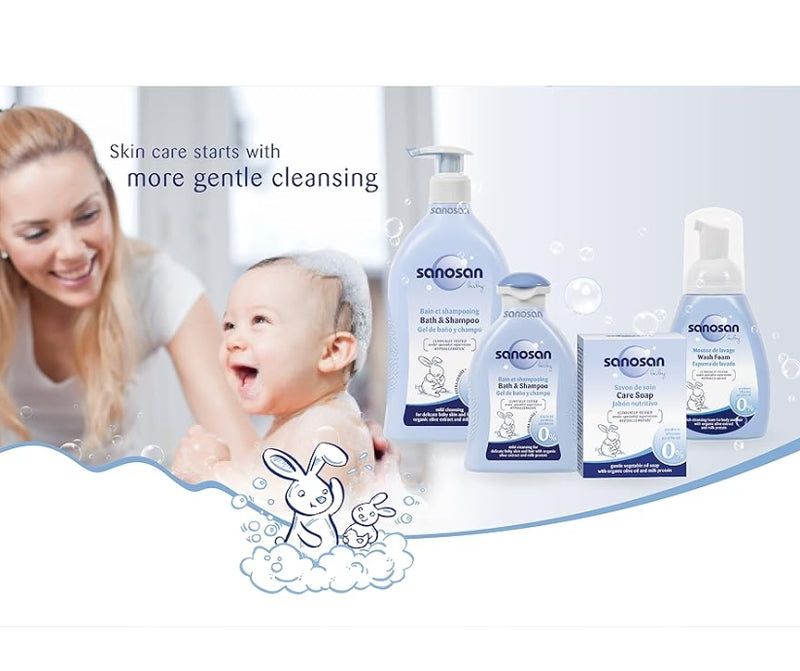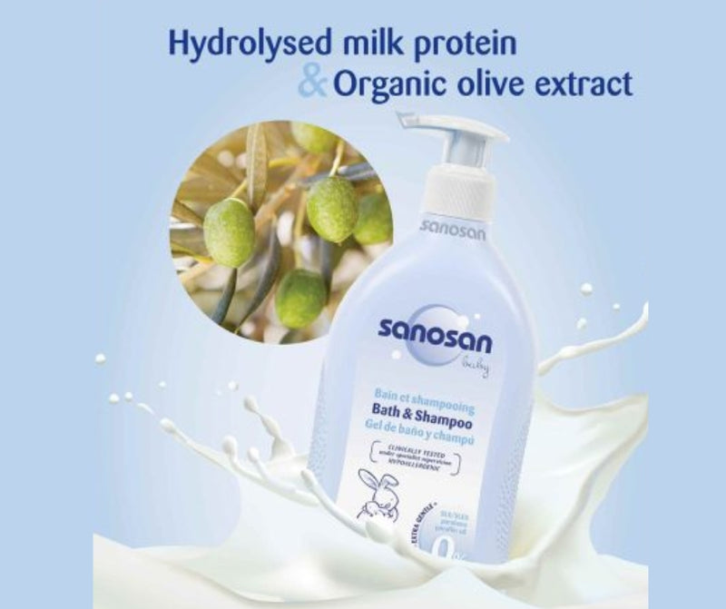 La proteina del latte garantisce che persino lavarsi il bambino sia più delicato. Tutti i prodotti detergenti contengono sostanze di lavaggio attive. Ma anche le sostanze di lavaggio più lieve possono attaccare il film protettivo sulla pelle di un bambino e sconvolgerne l'equilibrio. La proteina del latte a Sanosan protegge da questo.